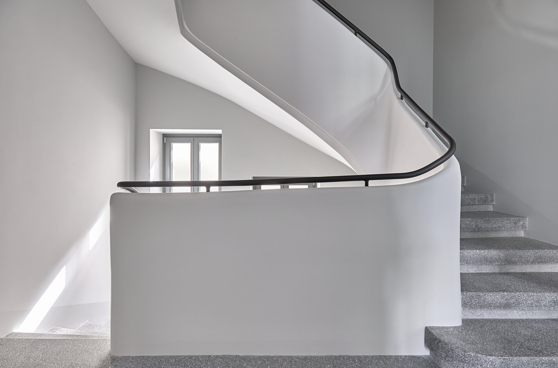 The project involved extensive rehabilitation and structural consolidation, while at the same time preserving the architectural image. With this in mind, several valuable elements were preserved both inside and outside, including the façade profiles, the original woodwork, the mosaic flooring, and the interior staircase railing.